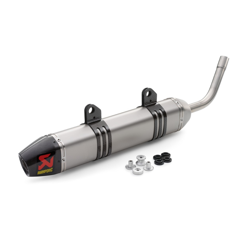 Silenciador Akrapovič: años de experiencia en competición, una selección perfecta de materiales y un diseño deportivo. ¡Incluso para motores de 2 tiempos! Ventajas: Peso mínimo, Máximo rendimiento a máxima potencia, Curva de par perfectamente distribuida, El nivel de ruido más bajo de cualquier silenciador de 2 tiempos, Larga vida útil.